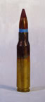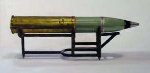 Smith always tackles his subject matter with an intensity which is evident in the paintings. these weapons are lethal but Smith manages to portray them in an almost calm and serene manner. The potential threat of violence and destruction is simmering beneath the thick gloss of the oil paint. Their scale is almost alarming as a bullet is enlarged to the scale of a person, somehow commenting on it's power and menace, and yet, it resembles a lipstick case making it almost abstract.